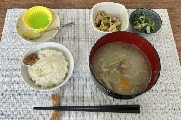 令和7年度最後の昼食は「豚汁」でシメ!ご飯のお供は「豚味噌」と豚づくし年度末昼食となりました。