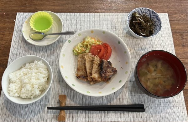 4月10日の手作り昼食は、豚肉の味噌漬け焼き