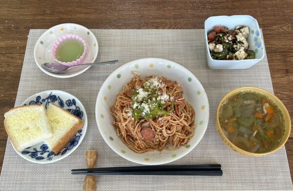 今週の麺は「イタリアン」でした。イタリアンですが、ご利用者様も抵抗なく食べていらっしゃいました(嬉)