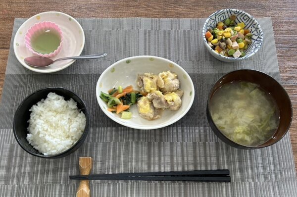 4月7日の手作り昼食は、鶏肉のカスタード焼き