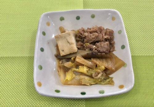 餃子はスープにすると皮の触感が変わるので、嚥下力が落ちている利用者様にも「つるん」と食べやすくなります。